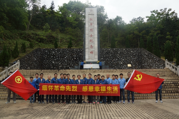 銅鼓嶺紅軍烈士紀(jì)念碑是為紀(jì)念紅軍在長征途中經(jīng)過廣東省仁化縣城口鎮(zhèn),阻擊敵軍而英勇獻身的烈士們所建。項目黨支部副書記張正勇帶領(lǐng)全體黨員重溫了入黨誓詞,向革命英雄敬獻了花籃,并瞻仰了革命烈士紀(jì)念碑、烈士事跡紀(jì)念墻等。