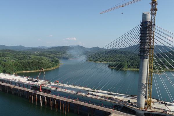 環(huán)萬佛湖旅游扶貧公路工程是舒城縣近年來投資最大、社會關(guān)注度最高的重點工程之一。老柴崗大橋作為環(huán)萬佛湖旅游扶貧公路工程控制性工程,是一座集景觀、交通于一體的橋梁;大橋主塔高81米,整個橋塔輪廓呈“佛手合十”狀。老柴崗大橋的合龍意味著環(huán)萬佛湖項目主體工程的順利完工。