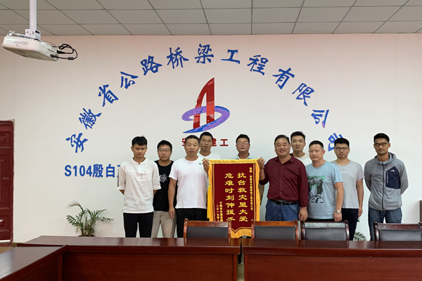 9月4日,寧國市交通運(yùn)輸局副局長程紹忠一行為S104PPP項(xiàng)目送來感謝信和一面書寫著“抗臺救援顯大愛、危難時刻伸援手”的錦旗,對項(xiàng)目近期在支援地方抗洪搶險中所做的貢獻(xiàn)表示感謝。