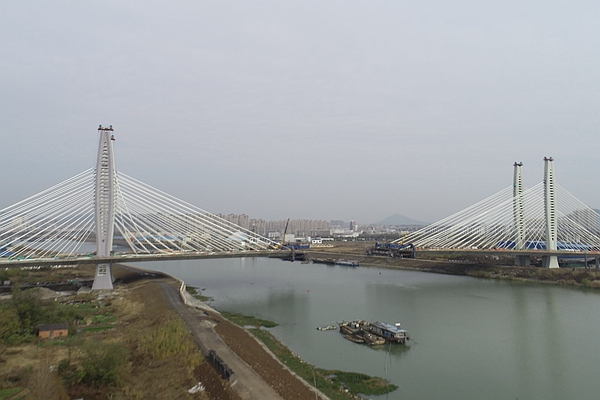 遠遠的就能看見,在巢湖市東南的裕溪河上,兩對魚梭型的塔柱高聳入云,分立兩岸,仿佛四位銀色衛(wèi)士,在守衛(wèi)著居巢大地。