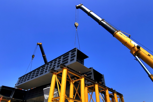 第35聯(lián)鋼箱組合梁的架設(shè)也是一場硬戰(zhàn)。該鋼箱組合梁共三跨,長約140余米。黨員們組織成立突擊隊,從架設(shè)方案編制到現(xiàn)場架設(shè)進行全力攻堅,經(jīng)過連續(xù)10天不間斷的施工,最終圓滿完成了全部架設(shè)任務(wù),為主線橋橋面按計劃通車打下了堅實的基礎(chǔ)。