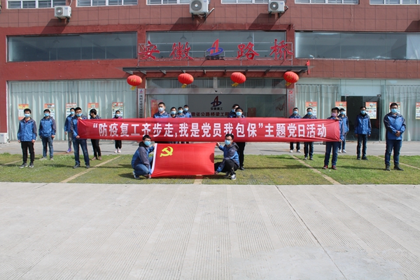 支部書記朱生才首先宣讀了“黨員包保責(zé)任區(qū)”活動(dòng)方案。黨員代表王祥在發(fā)言中表示,將堅(jiān)定信心,化危為機(jī),帶領(lǐng)員工快速實(shí)現(xiàn)復(fù)工復(fù)產(chǎn),確保“起步即沖刺、復(fù)工即大干”,讓黨旗在防疫復(fù)工一線高高飄揚(yáng)。黨日活動(dòng)還就復(fù)工過(guò)程中如何做好宣傳、聯(lián)防聯(lián)控、安全隱患整改、早日恢復(fù)規(guī)模化施工等問(wèn)題進(jìn)行了梳理研究?;顒?dòng)最后,黨員同志一起重溫了入黨誓詞。