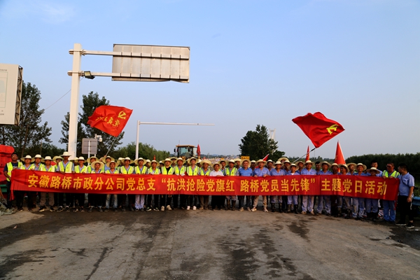在這場抗洪搶險突擊中,市政分公司黨總支現(xiàn)場組織開展了一次主題為“抗洪搶險黨旗紅 路橋黨員當(dāng)先鋒”的黨日活動,號召所屬黨支部和廣大黨員堅守陣地,把黨組織的戰(zhàn)斗堡壘建在抗洪搶險的最前沿。