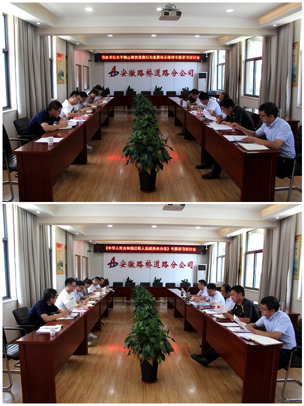 8月15日上午,道路分公司黨總支召開專題學(xué)習(xí)研討會,深入學(xué)習(xí)貫徹落實習(xí)近平總書記關(guān)于制止餐飲浪費的重要指示精神和《中華人民共和國公職人員政務(wù)處分法》,分公司領(lǐng)導(dǎo)班子、總支委員及后勤部門負責(zé)人參加學(xué)習(xí)并結(jié)合實際開展研討。