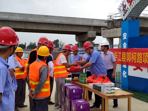 項目積極組織開展“消除事故隱患,筑牢安全防線”主題安全月活動,組織員工和一線作業(yè)人員觀看安全微電影,學(xué)習(xí)安全防護常識,提高安全防護意識。結(jié)合項目實際開展交通傷害應(yīng)急演練,帶領(lǐng)一線作業(yè)人員學(xué)習(xí)交通傷害后的應(yīng)急操作,提高一線作業(yè)人員應(yīng)急知識儲備,提高應(yīng)急處置能力。高溫天氣來襲,項目每天向一線作業(yè)人員發(fā)放十滴水、藿香正氣液等防暑降溫藥品和綠豆、白糖、礦泉水等防暑降溫物資,保障安全生產(chǎn),為大干快上保駕護航。