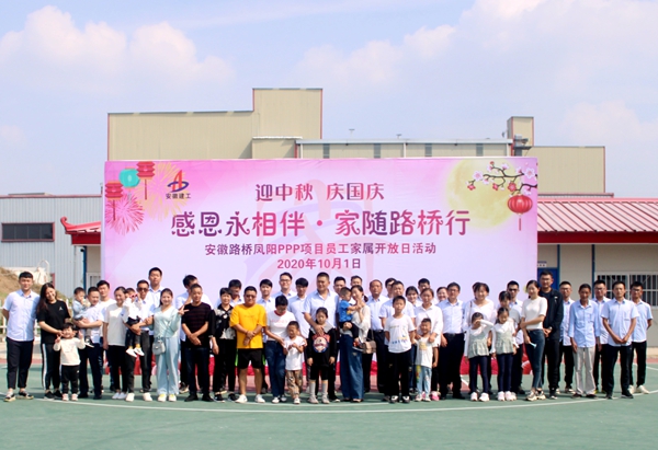 今年的中秋喜逢國(guó)慶,家與國(guó)撞了滿懷。在舉國(guó)歡慶、萬(wàn)家團(tuán)圓的欣喜時(shí)刻,仍有很多路橋人為了工程建設(shè),舍小家、為大家,堅(jiān)守崗位、奮戰(zhàn)一線。為進(jìn)一步深化公司“家文化”建設(shè),10月1日,鳳陽(yáng)PPP項(xiàng)目黨支部精心組織開展了“感恩永相伴•家隨路橋行”員工家屬日活動(dòng),20余名員工家屬受邀到項(xiàng)目部與家人團(tuán)聚,共慶佳節(jié)。