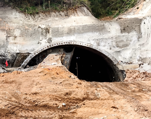 面對隧道圍巖差、跨徑大、洞口沉積淤泥難題,項目提前謀劃,強化過程控制,加強超前地質(zhì)預(yù)報及監(jiān)控量測頻率,及時改進和優(yōu)化施工方案。對洞口沉積淤泥段采取科學(xué)有效措施,確保汛期來臨前完成了進洞任務(wù),歷時210多天,順利實現(xiàn)了雙向貫通。