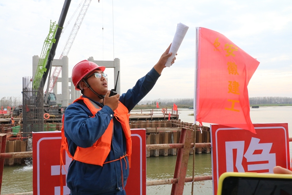 固蚌、蕪黃高速作為省委省政府規(guī)劃的“縣縣通高速”,將在2021年建成通車,這對于今年3月份項目才正式開工的全體建設者來說,無疑是個巨大挑戰(zhàn)。在淮河岸邊、澮河之上,青年黨員陸志康正在組織打樁機施工?!皾液犹卮髽蜷L2.6km,是安徽省首座組合梁系桿拱橋,引橋采用鋼板組合梁,建成后將成為澮河上的新地標,”他自信地說。不論是疫情防控后的復工復產,還是抗洪期間,他都始終沖鋒在前,白天在一線蹲守,晚上研究解決問題的辦法。圓月初升,各個工位上的聚光燈,點燃寂靜夜空,將夜晚照得如同白晝明亮,陸志康乘著夜色仍在混凝土澆筑工點,忘記了時間,只為了一個目標,就是要把項目又好又快建成。