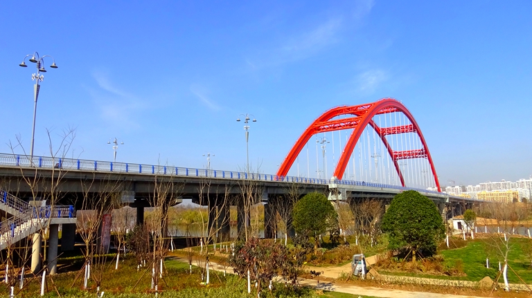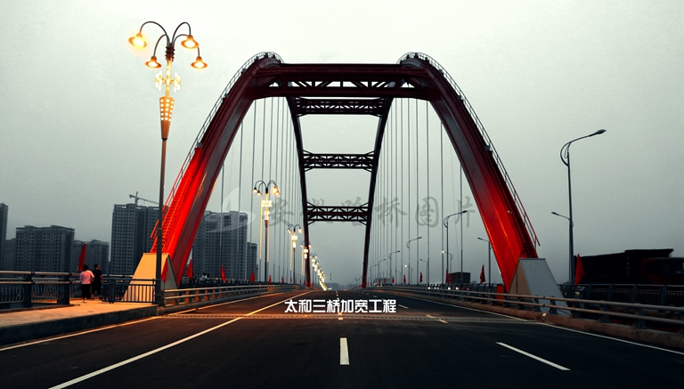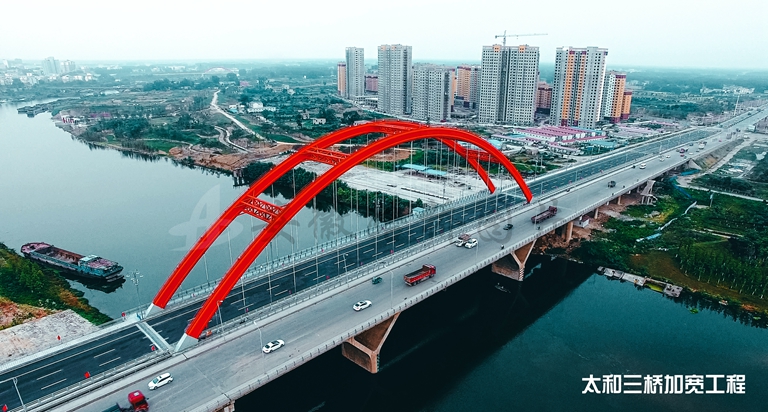 105國(guó)道(三角元至太和段)太和潁河三橋加寬工程于2015年8月開(kāi)工,2017年7月順利交工。橋梁全長(zhǎng)576.53米,主橋全寬23.2米,引橋全寬19.5m,主跨為152米下承式鋼管砼系桿拱橋,引橋?yàn)?0m箱梁結(jié)構(gòu),下部結(jié)構(gòu)采用柱式墩,鉆孔灌注樁基礎(chǔ),設(shè)計(jì)荷載等級(jí)為公路-I級(jí)。該項(xiàng)目建成通車以來(lái),有效改善了太和縣城潁河兩岸的交通狀況,對(duì)加快城鎮(zhèn)化建設(shè)起到了重要作用。