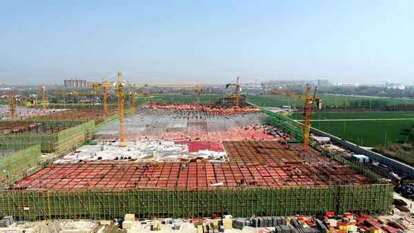 在黨員的帶動下,項目整個團(tuán)隊的精氣神極大振奮。春節(jié)期間,項目黨支部進(jìn)一步自我加壓,堅持施工“不打烊”,700多名建筑工人和管理人員全身心投入到項目建設(shè)中,既保節(jié)點、趕進(jìn)度,也抓安全、保質(zhì)量,提前10天完成了12265根、共計19.6萬米樁基礎(chǔ)施工,為提前封頂?shù)於藞詫嵒A(chǔ)。