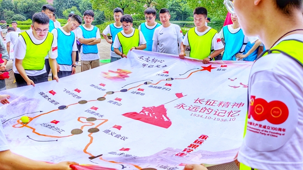 在新四軍江北指揮部紀(jì)念館,全員參觀了館藏的200余幅珍貴歷史照片、圖表和文獻(xiàn)資料,認(rèn)真了解了新四軍組建、發(fā)展和壯大的歷程,切實(shí)的感受革命先烈們?yōu)榱诵轮袊膭倮麙侇^顱灑熱血的大無畏精神。隨后,大家共同完成了《歌唱祖國》合唱、“長征精神”、“雷區(qū)取水”、填寫入職寄語和觀看愛國主義教育片《建黨偉業(yè)》等一系列團(tuán)建活動(dòng),在培養(yǎng)新員工團(tuán)隊(duì)協(xié)作能力的同時(shí),進(jìn)一步加強(qiáng)了紅色教育。