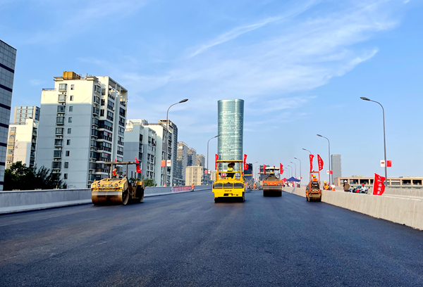 7月14日上午,公司承建的暢通二環(huán)(西南環(huán))金寨路、合作化路節(jié)點(diǎn)工程主線高架橋橋面首次瀝青攤鋪順利完成,標(biāo)志著該項(xiàng)目由主線橋主體結(jié)構(gòu)施工階段正式轉(zhuǎn)為橋面施工。