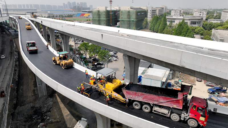 互通匝道瀝青的攤鋪完成,為如期通車奠定了堅(jiān)實(shí)基礎(chǔ),方興大道與宿松路兩條快速路“空中互聯(lián)互通”即將成為現(xiàn)實(shí)。