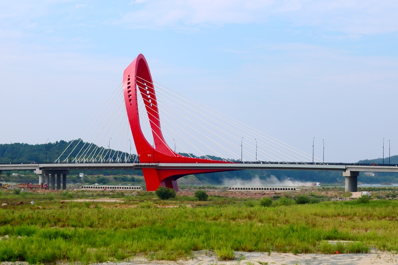 該項目位于金寨縣江店新城內(nèi),為蓮花山路過河通道,路線全長約1.1公里,其中橋梁全長約629米,主橋長159米,采用“搖籃”造型,為獨塔雙索面斜拉橋。項目建成后,將有效改善周邊居民的出行條件和道路運行環(huán)境,對促進金寨縣河西片區(qū)與江店新城一體化發(fā)展具有重要意義。