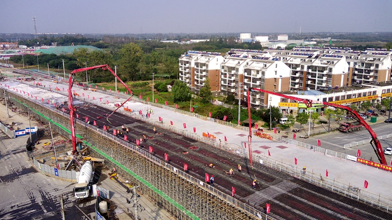 10月14日上午,G312合六路2標項目“百日攻堅大會戰(zhàn)”專項競賽傳來捷報,伴隨著小蜀山西路上跨橋最后一聯(lián)現澆箱梁頂板順利澆筑,項目主線順利實現貫通。
