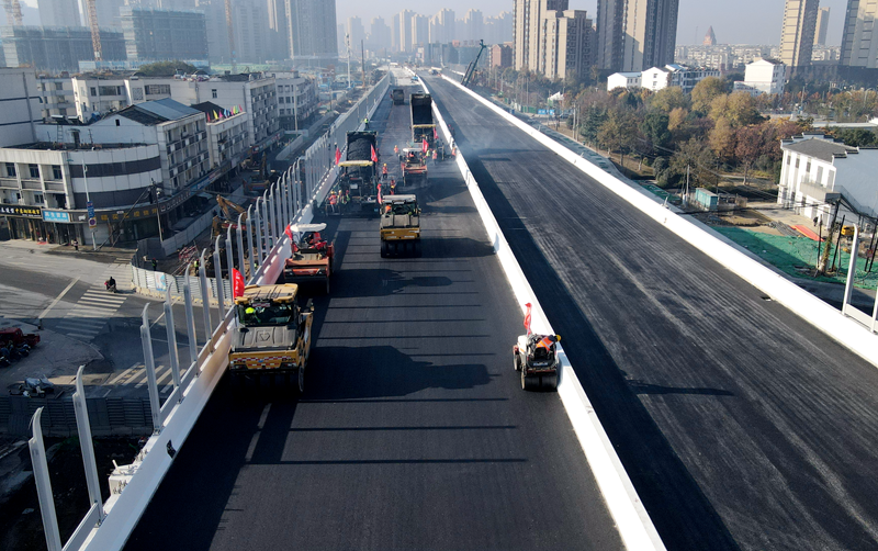 12月4日上午,伴隨著攤鋪機(jī)的轟鳴聲,金寨南路快速化改造(望水路-站前路)項目主橋橋面瀝青混凝土開始攤鋪,標(biāo)志著離主線橋通車目標(biāo)更近了一步。