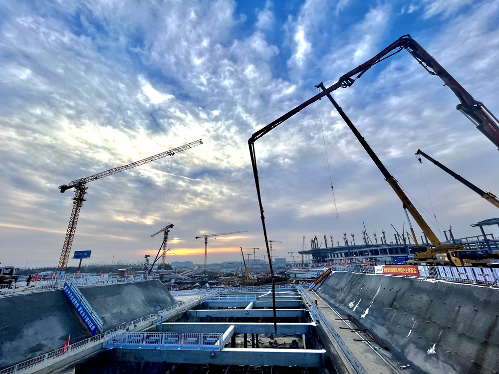 12月23日下午,合肥新橋國際機場綜合交通中心項目歷經(jīng)約10小時的鏖戰(zhàn),圓滿完成項目地鐵S1線首塊底板澆筑。