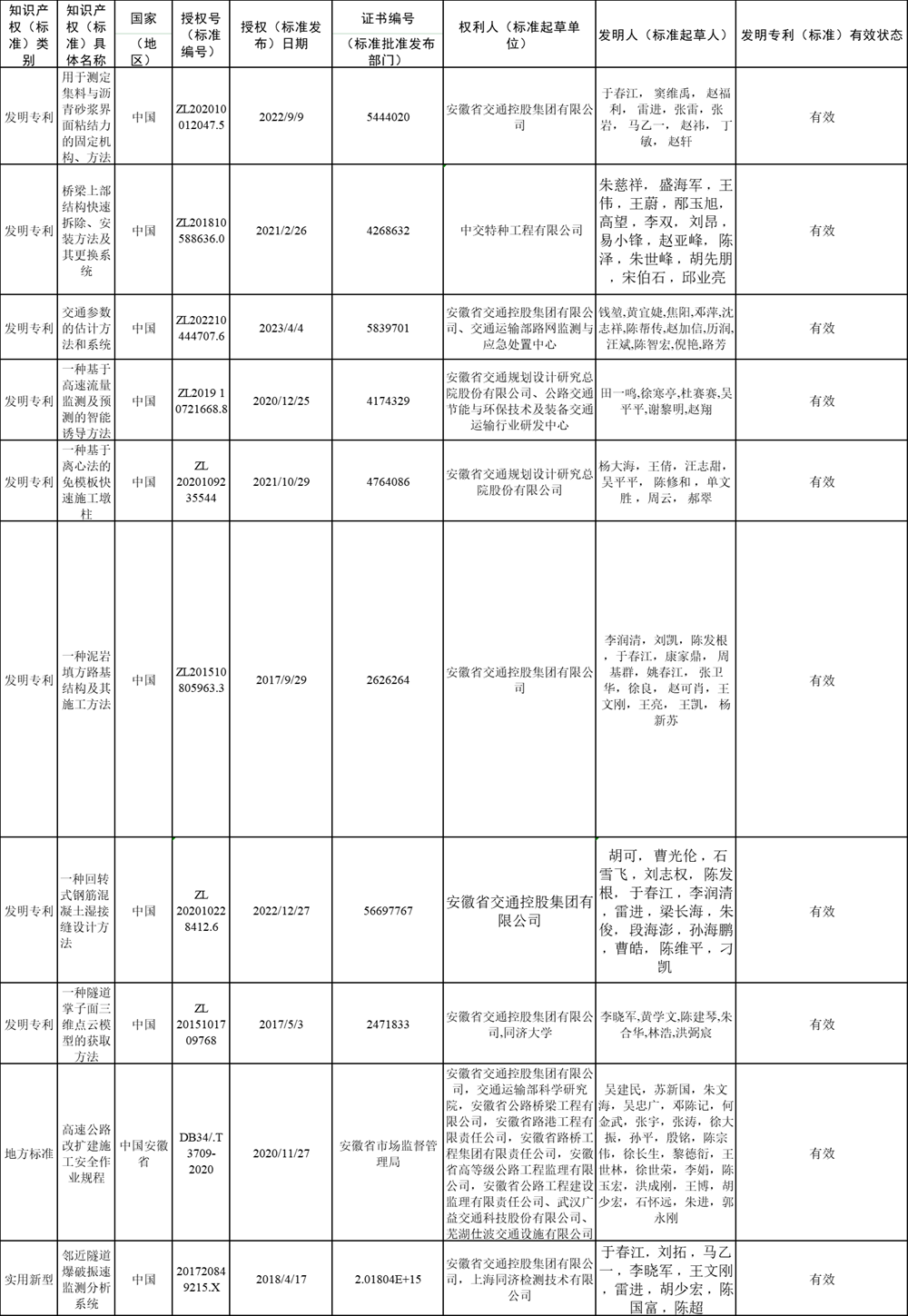 安徽省交通控股集團有限公司、安徽省交通規(guī)劃設(shè)計研究總院股份有限公司、安徽交控工程集團有限公司、安徽省公路橋梁工程有限公司、交通運輸部科學(xué)研究院、安徽巢湖路橋建設(shè)集團有限公司、中交特種工程有限公司