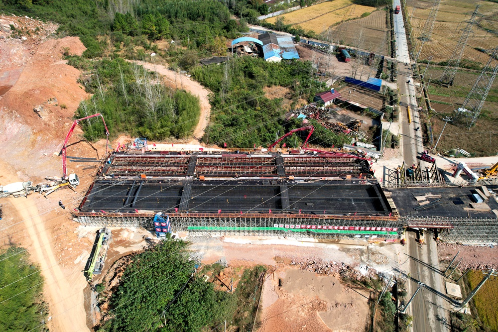 工程建設(shè)制勝在關(guān)鍵點(diǎn),項(xiàng)目部始終堅(jiān)持把關(guān)鍵節(jié)點(diǎn)工程攻堅(jiān)作為“頭號工程”。水東四號橋位于象山腳下,橫跨鄉(xiāng)道施工,施工組織難度大,安全風(fēng)險(xiǎn)高。項(xiàng)目積極組織工作專班,通過優(yōu)化方案、細(xì)化分工、倒排工期和現(xiàn)場監(jiān)督等措施,并積極對接當(dāng)?shù)卣陀嘘P(guān)電力部門,多番實(shí)地考察、測量,保障施工過程的有序性、高效性和安全性。2023年11月8日上午,水東四號橋首件現(xiàn)澆梁順利澆筑完成,標(biāo)志著項(xiàng)目關(guān)鍵施工節(jié)點(diǎn)取得突破性進(jìn)展。