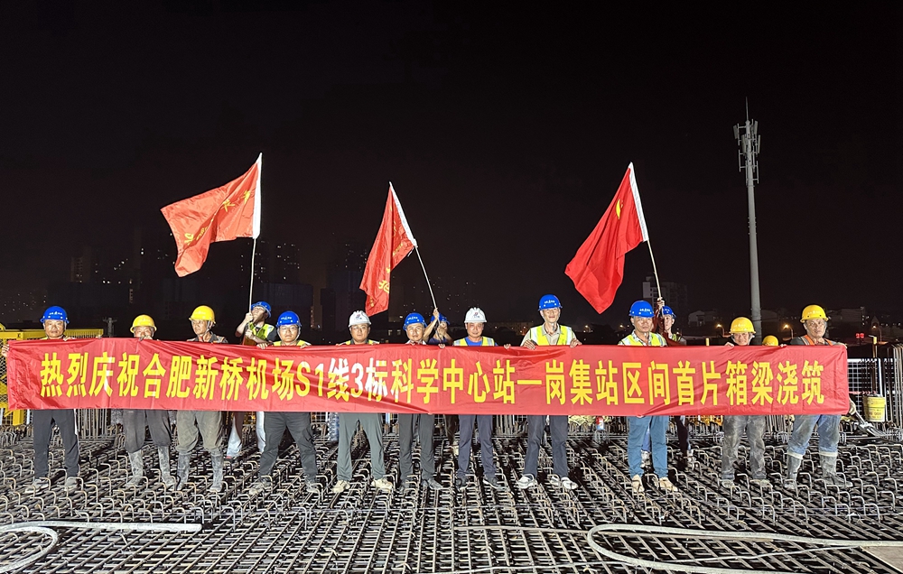 【路橋“競”行時(shí)】合肥新橋機(jī)場S1線3標(biāo)科學(xué)中心站-崗集站區(qū)間首跨箱梁完成澆筑