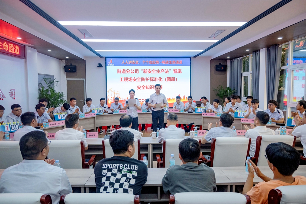 6月29日下午,隧道分公司組織開展“新安全生產(chǎn)法與施工現(xiàn)場安全防護標(biāo)準(zhǔn)化”知識競賽活動。省交通質(zhì)安中心安全生產(chǎn)監(jiān)管處副處長嚴(yán)搖鈴,分公司領(lǐng)導(dǎo)班子、機關(guān)各部門負(fù)責(zé)人、所屬項目經(jīng)理及職工代表現(xiàn)場觀賽。