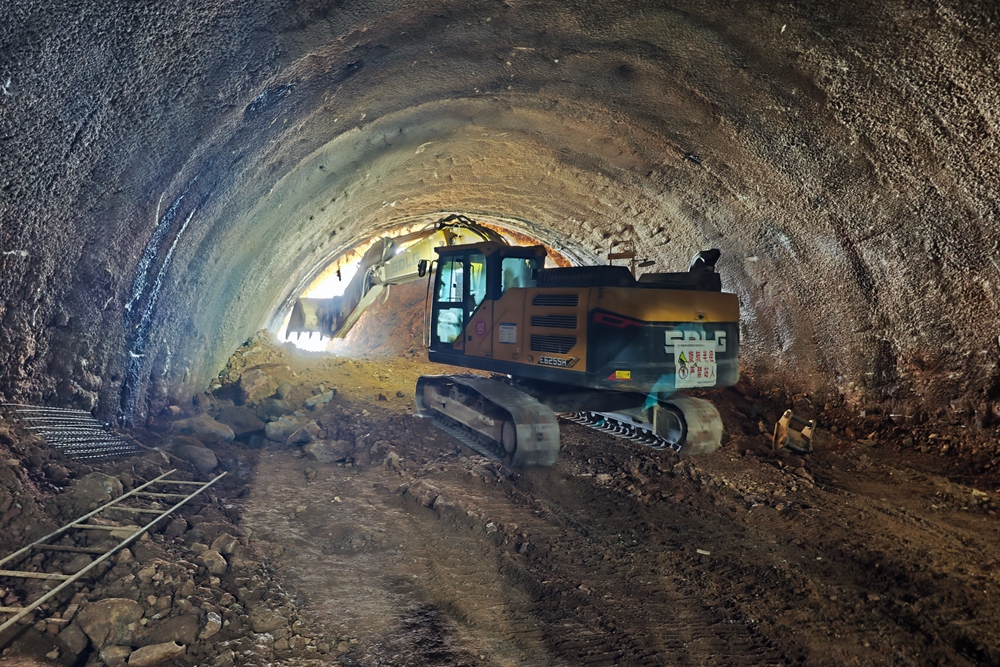在江梓隧道左洞的內(nèi)部,也同時迎來了激動人心的一刻。隨著挖掘機(jī)挖掘產(chǎn)生的巨大轟鳴聲在隧道內(nèi)回蕩,最后一塊巖石被精準(zhǔn)地挖掘開來,陽光透過新開的洞口灑進(jìn)隧道,照亮了這片黑暗的空間。工人們紛紛停下手中的工作,歡呼雀躍,慶祝這一時刻的到來。江梓隧道左洞的順利貫通,為項(xiàng)目后續(xù)耙齒嶺大橋梁板運(yùn)輸及安裝提供了有力保證,為整體工程的推進(jìn)奠定了堅(jiān)實(shí)基礎(chǔ)。江梓隧道右洞的施工也在緊張施工中,預(yù)計(jì)于8月份貫通。