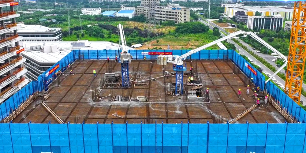 與傳統(tǒng)布料方式相比,液壓智能布料機(jī)優(yōu)勢顯著,“傳統(tǒng)布料機(jī)依賴人工操作,三伏天施工,施工人員不僅要忍受高溫,還存在布料精度難以保證的問題,容易出現(xiàn)混凝土分布不均的情況。”韋鯤鵬介紹,而液壓智能布料機(jī)能夠?qū)崿F(xiàn)自動化、精準(zhǔn)化布料,工人手持遙控器就能控制混凝土澆筑,提升了施工作業(yè)安全性,減輕了施工負(fù)擔(dān)。