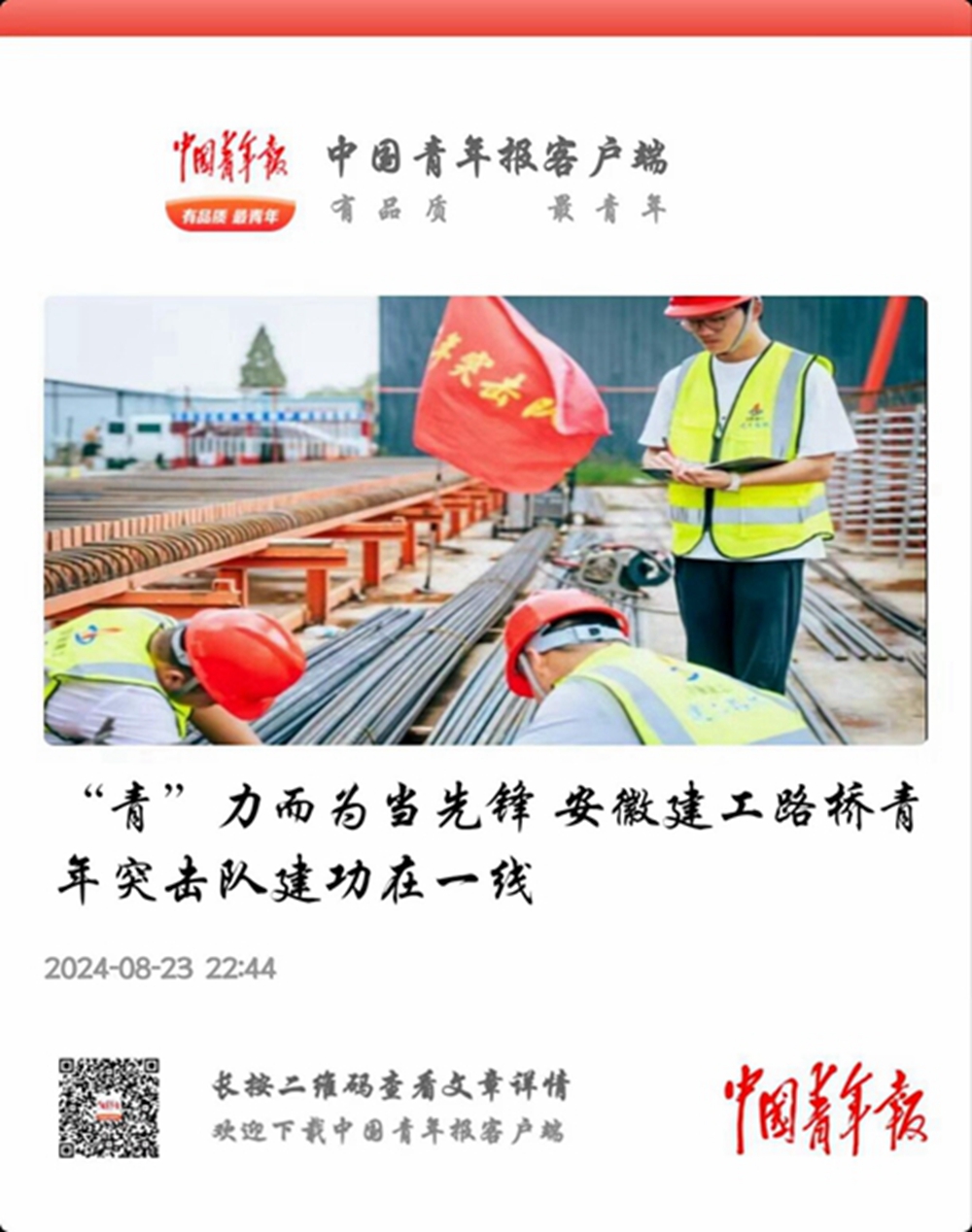 【名媒聚焦】中國青年報:“青”力而為當(dāng)先鋒 安徽建工路橋青年突擊隊(duì)建功在一線