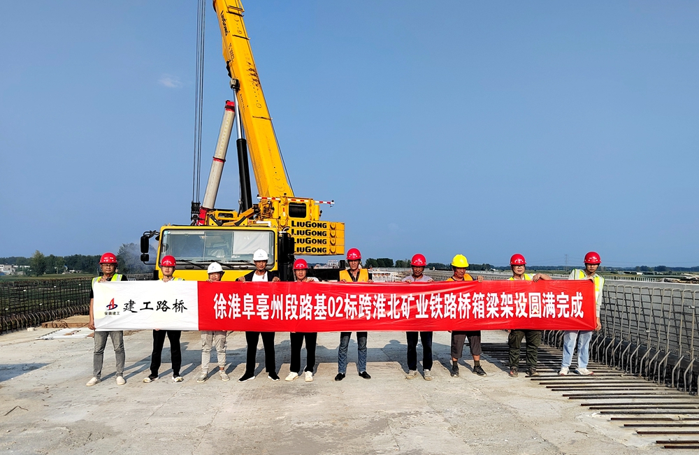 【路橋“競”行時】徐淮阜高速亳州段路基02標跨淮北礦業(yè)鐵路橋箱梁架設完成