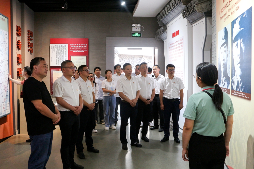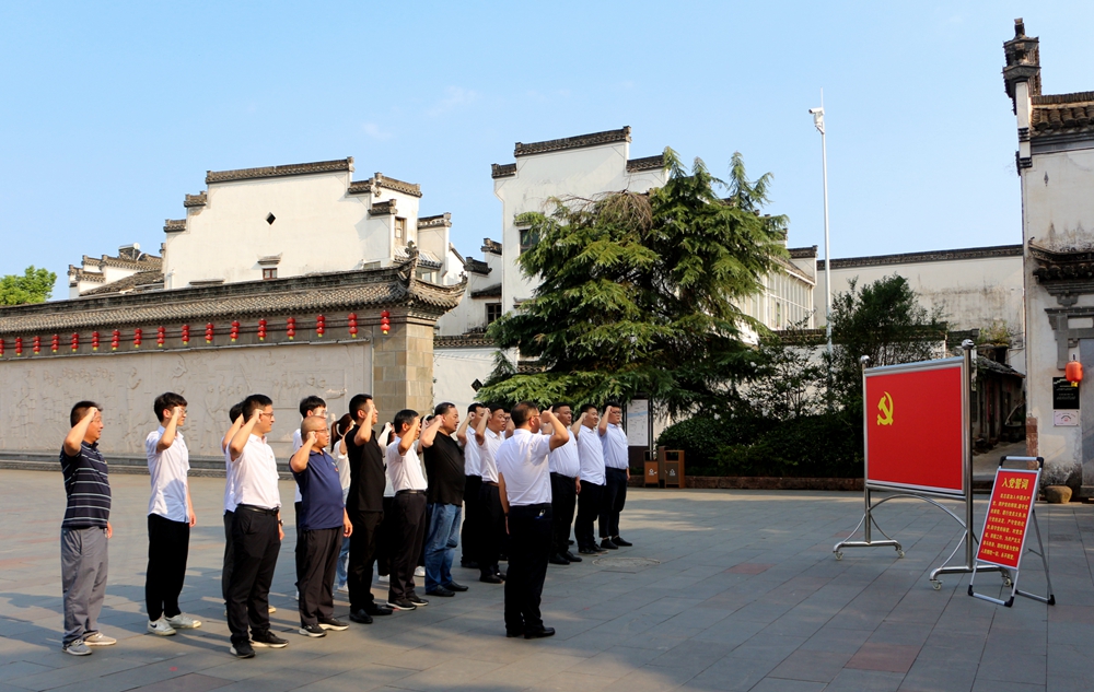 在巖寺新四軍軍部舊址紀(jì)念館,參加活動(dòng)人員學(xué)習(xí)了解了新四軍在各個(gè)階段的重大事件、戰(zhàn)斗歷程以及整編的重大意義,感受革命先烈的豐功偉績及老一輩革命家為理想艱苦奮斗、流血犧牲、奮勇前進(jìn)的偉大精神。全體黨員在革命先烈的銅像前,面對(duì)黨旗,重溫入黨誓詞。