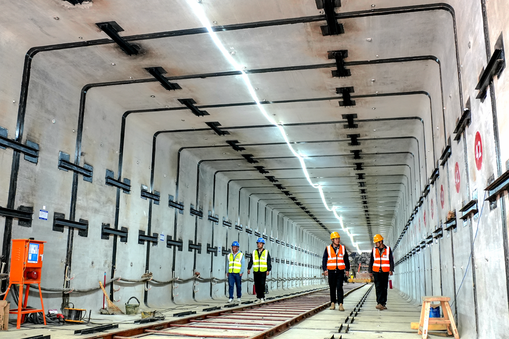 機(jī)場S1線3標(biāo)項(xiàng)目大力推進(jìn)“清單+閉環(huán)”工作責(zé)任機(jī)制,多次召開勞動競賽大討論完善部門協(xié)調(diào)、現(xiàn)場分工。入夏以來,先后完成崗四區(qū)間明挖段盾構(gòu)井主體結(jié)構(gòu)封頂、崗集站主體結(jié)構(gòu)封頂兩大關(guān)鍵節(jié)點(diǎn),向著完成全線主體結(jié)構(gòu)施工的年度目標(biāo)邁出堅實(shí)的步伐。6號線龍?zhí)镣\噲鲰?xiàng)目積極協(xié)調(diào)各方單位,克服西氣東輸支線管道遷改這一最大制約因素,順利完成全部樁基施工,并于9月13日完成了邊跨輔房最后一段頂板的澆筑任務(wù)。新橋機(jī)場S1線先行段項(xiàng)目搶抓施工黃金期,聚焦關(guān)鍵節(jié)點(diǎn)精準(zhǔn)發(fā)力,提前實(shí)現(xiàn)史河路站硬巖地層基坑開挖見底,為項(xiàng)目完成年度目標(biāo)打下堅實(shí)基礎(chǔ)?;羟馪PP項(xiàng)目施工現(xiàn)場運(yùn)輸車、攤鋪機(jī)、壓路機(jī)等機(jī)器轟鳴交錯,項(xiàng)目建設(shè)有條不紊、如火如荼,蓼東大道路基結(jié)構(gòu)施工已全部完成,各項(xiàng)附屬結(jié)構(gòu)施工也正同步進(jìn)行。