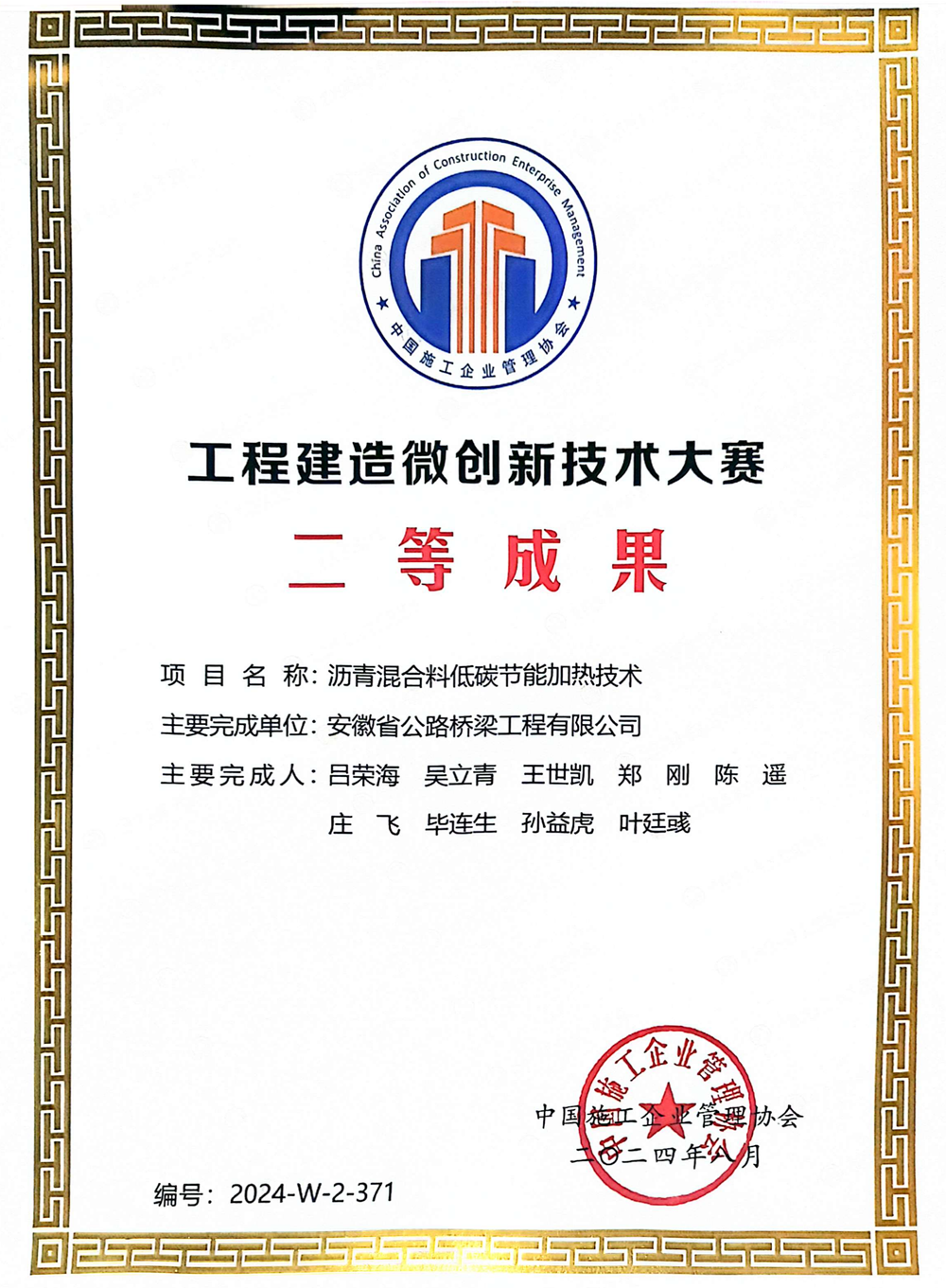 建設(shè)公司始終牢記“科技創(chuàng)新試驗(yàn)田”定位,在項(xiàng)目建設(shè)過程中大力開展技術(shù)創(chuàng)新工作,積極推動(dòng)創(chuàng)新成果轉(zhuǎn)化,不斷提高核心競爭力。研發(fā)的“瀝青混合料低碳節(jié)能加熱技術(shù)”,通過不同加熱技術(shù)的互補(bǔ)實(shí)現(xiàn)瀝青混合料加熱技術(shù)的資源節(jié)約、成本控制以及污染減排效益最大化,今年以來該技術(shù)的應(yīng)用已節(jié)省施工成本近600萬元。該項(xiàng)創(chuàng)新技術(shù)榮獲中國施工企業(yè)管理協(xié)會工程建造微創(chuàng)新技術(shù)大賽二等獎(jiǎng)、安徽省交通科技進(jìn)步一等獎(jiǎng)、國資委省屬企業(yè)原創(chuàng)技術(shù)研發(fā)攻關(guān)項(xiàng)目。2024年以來,建設(shè)公司已先后榮獲省級優(yōu)秀質(zhì)量管理小組成果14項(xiàng),中國公路學(xué)會第五屆全國公路微創(chuàng)新大賽銅獎(jiǎng)1項(xiàng),中施企業(yè)綠色低碳施工工法1項(xiàng),完成公司四項(xiàng)科研課題立項(xiàng)工作。