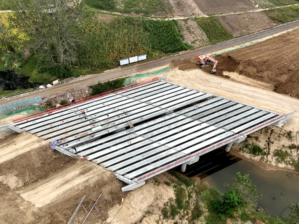 隨著最后一片梁板精準(zhǔn)落位,徐淮阜高速亳州段路基02標(biāo)主線橋梁板架設(shè)任務(wù)順利完成,項(xiàng)目主線橋全面進(jìn)入橋面系及護(hù)欄施工階段。