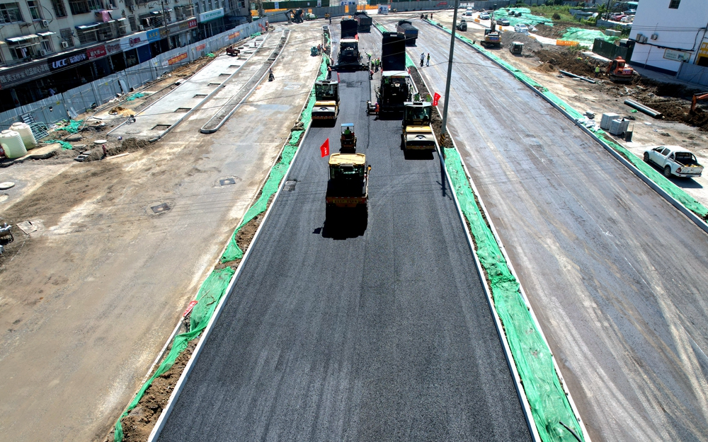 在肥西市政項(xiàng)目,項(xiàng)目團(tuán)隊(duì)搶抓晴好天氣,人員機(jī)械密切配合,推動創(chuàng)新大道、云谷路全面進(jìn)入瀝青攤鋪施工階段,提前完成計(jì)劃產(chǎn)值。