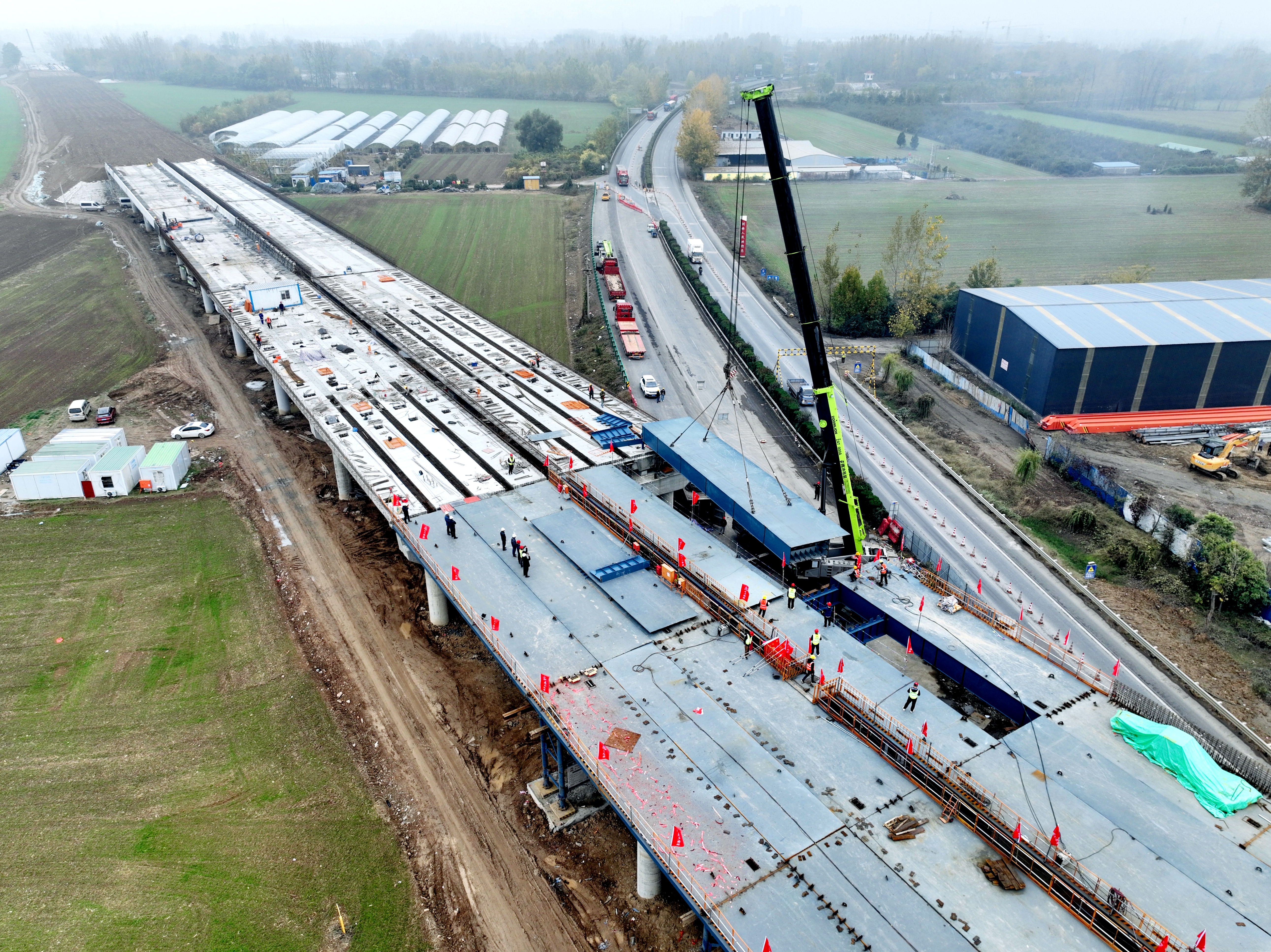 記者在現(xiàn)場了解到,11月以來,淮北段項目實現(xiàn)多個重要節(jié)點突破,先后完成K71+462車行天橋、K46+814.5大廟溝橋、K40+647.6洪堿河大橋3座橋梁下部結構施工,上跨臥龍湖煤礦鐵路橋、K43+681規(guī)劃G237分離立交橋、K42+794中橋三座橋梁橋面系及附屬工程施工,項目重點控制性工程K50+162.5跨S303分離立交橋鋼箱梁的全部架設,目前正全力沖刺確保11月底前完成全線橋梁下部結構施工的節(jié)點目標。