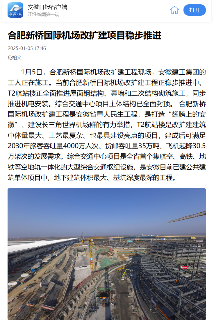 【名媒聚焦】安徽日報、合肥新聞聯(lián)播等省市主流媒體關注報道合肥新橋國際機場綜合交通中心項目