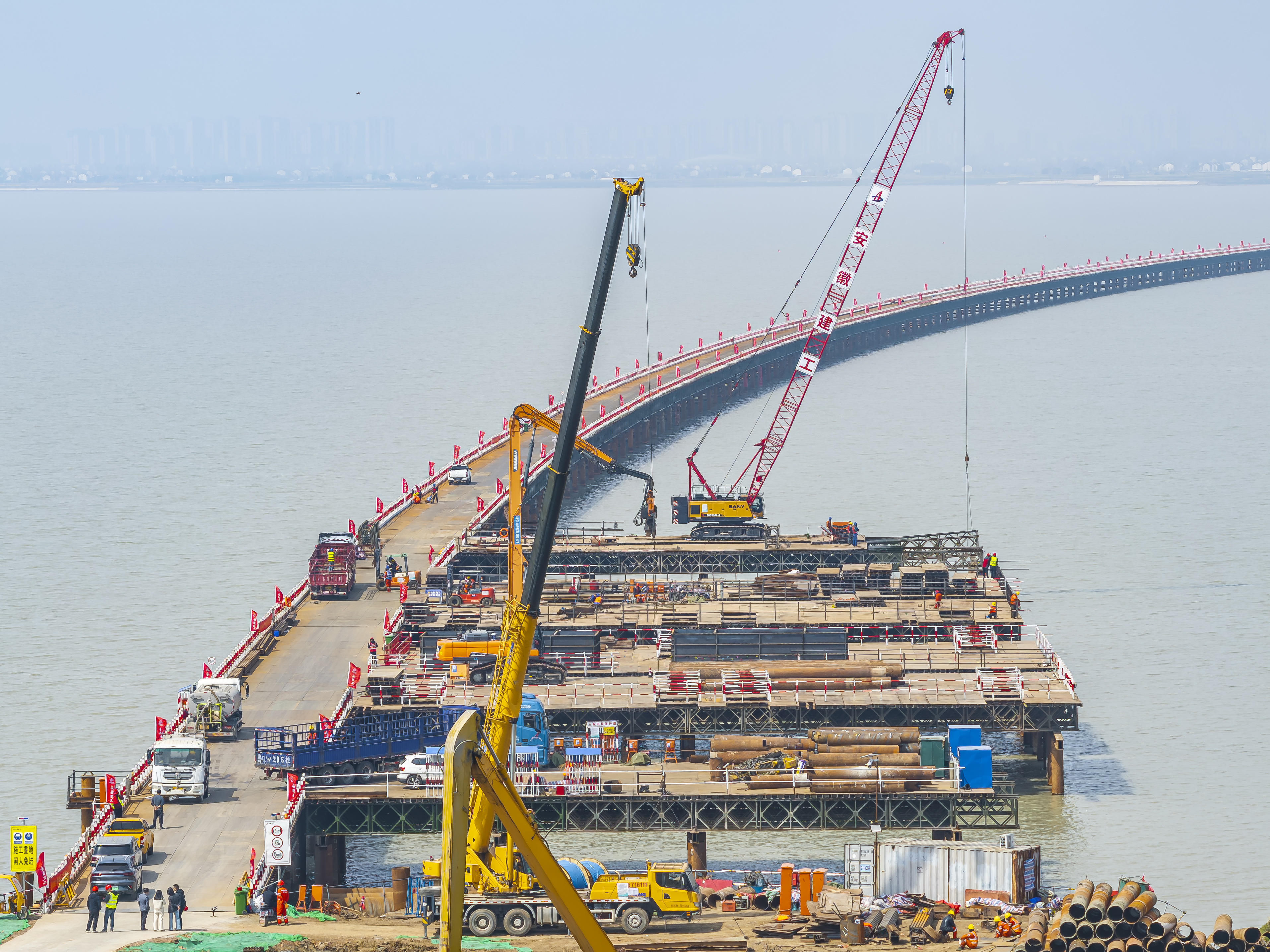 此次貫通的鋼便橋全長(zhǎng)3.5公里,作為主橋施工的“生命線(xiàn)”,承擔(dān)著機(jī)械通行、材料運(yùn)輸?shù)汝P(guān)鍵任務(wù)。為確保鋼便橋順利貫通,項(xiàng)目團(tuán)隊(duì)東西兩岸雙向推進(jìn)、同步攻堅(jiān),科學(xué)調(diào)配人員、物資等要素,歷時(shí)83天順利實(shí)現(xiàn)全幅貫通,較原計(jì)劃提前20天完成任務(wù)。