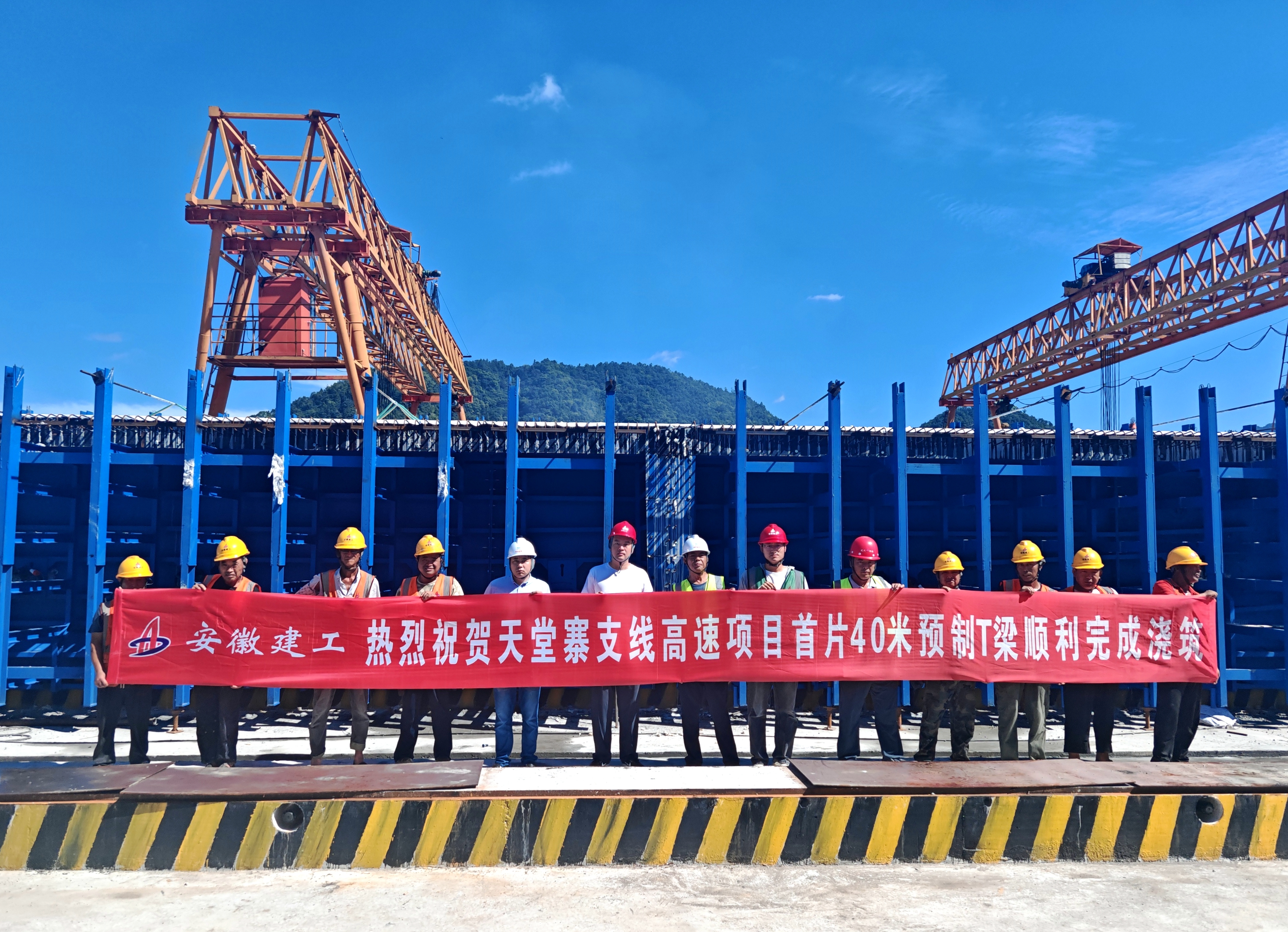 【路橋“競”行時】天堂寨支線高速項目首片預(yù)制T梁成功澆筑