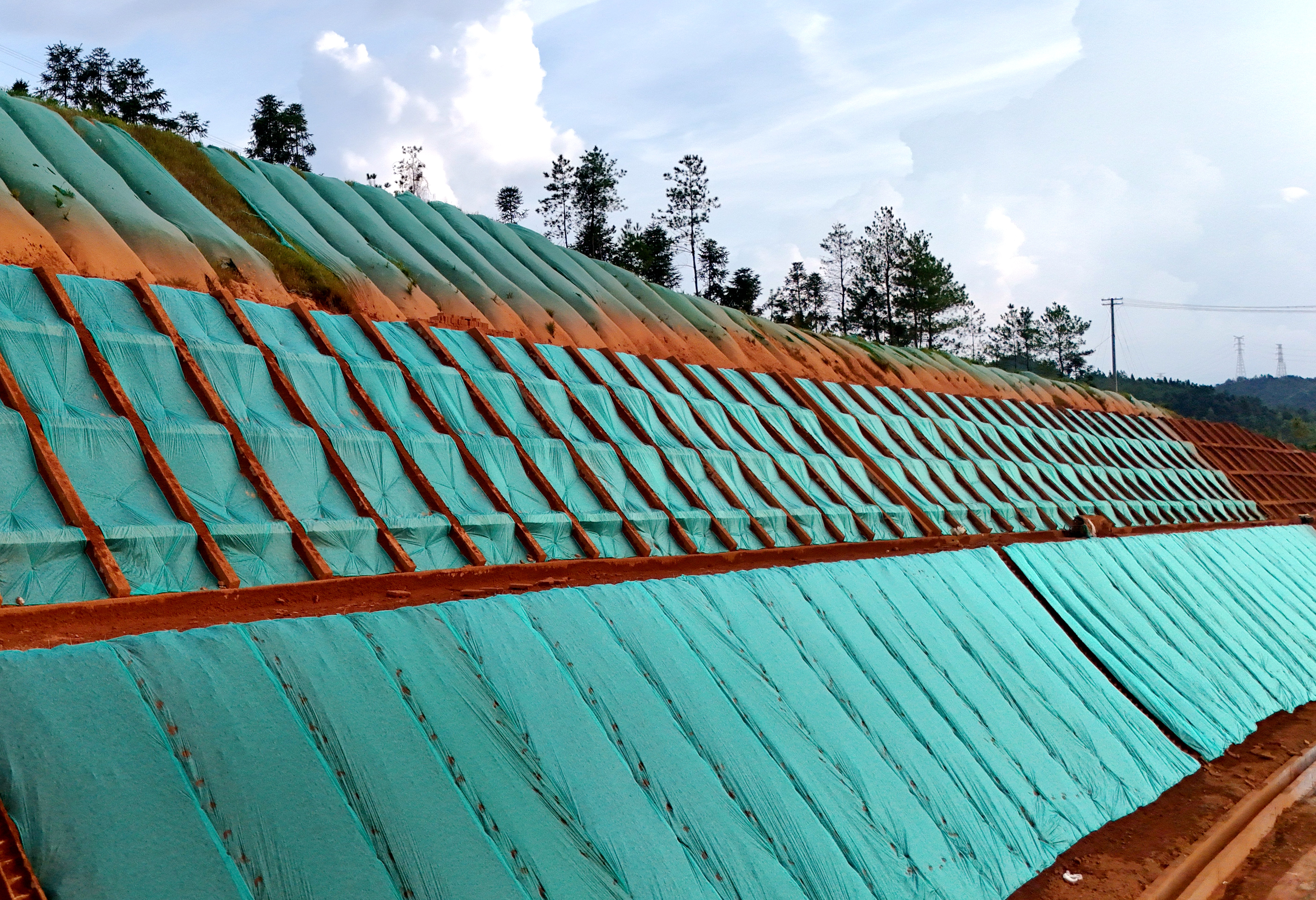 面對土壤本身易侵蝕、穩(wěn)定性差的巨大挑戰(zhàn),項目部提出了“預(yù)防為主、防治結(jié)合、全程管控”的施工思路。在滿足穩(wěn)定性的前提下控制坡率,有效降低坡面流速,減少侵蝕;同時采取“開挖一段、防護一段、綠化一段”的分區(qū)作業(yè)、分段施工方式,避免大面積同時開挖,縮短土壤裸露的時間;并針對紅壤酸性強、貧瘠、直接綠化困難的特點,充分發(fā)揮項目技術(shù)與設(shè)備優(yōu)勢,選取耐貧瘠、耐酸性、固土能力強、根系發(fā)達的本地草種,將種子、肥料、土壤改良劑、粘合劑、保水劑等與水混合,成功改良坡面土壤。通過該施工方法,項目降低綜合成本18%,水土流失減少70%,實現(xiàn)了降本增效與生態(tài)環(huán)保的多重效益。