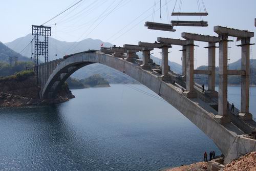 下午,觀摩團(tuán)一行又驅(qū)車來到了金桃橋項(xiàng)目。參觀了現(xiàn)場(chǎng)后,在金寨縣賓館會(huì)議室觀摩團(tuán)一行聽取了項(xiàng)目經(jīng)理劉曉晗的匯報(bào)。隨后各單位技術(shù)負(fù)責(zé)人就項(xiàng)目的箱拱吊裝施工等關(guān)鍵技術(shù)作了討論和交流。鄭總對(duì)該橋目前進(jìn)展情況表示滿意,并做了總結(jié)講話。同時(shí)對(duì)項(xiàng)目部積極探索和鉆研技術(shù)難點(diǎn)的精神表示贊賞。并對(duì)公司的質(zhì)量技術(shù)管理工作提出要求,要求格式進(jìn)一步結(jié)合深入學(xué)習(xí)實(shí)踐科學(xué)發(fā)展觀,繼續(xù)開展技術(shù)的開發(fā)挖掘,進(jìn)行技術(shù)的集成創(chuàng)新,研究、提煉項(xiàng)目工法和專利,為集團(tuán)公司技術(shù)創(chuàng)新多做工作,以增強(qiáng)集團(tuán)公司的核心競(jìng)爭(zhēng)力。