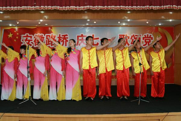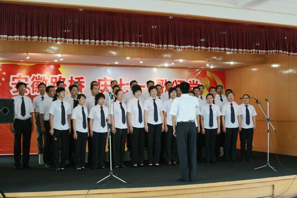 緊接著,慶七一,歌頌黨職工歌詠大賽開始。比賽在路面公司激昂的《沒有共產(chǎn)黨就沒有新中國(guó)》合唱聲中拉開序幕,比賽場(chǎng)上,參賽隊(duì)員精神飽滿,著裝整齊,懷著對(duì)中國(guó)共產(chǎn)黨、對(duì)祖國(guó)的深厚感情,熱情高歌《今天是你的生日我的中國(guó)》、《愛我中華》、《歌唱祖國(guó)》、《精忠報(bào)國(guó)》、《咱們工人有力量》、……發(fā)自肺腑的歌聲深深感動(dòng)了現(xiàn)場(chǎng)觀眾。