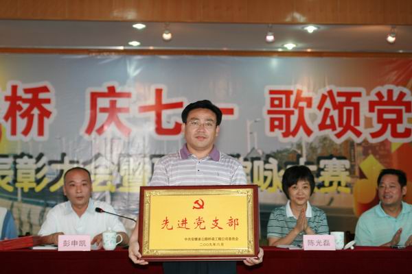 會(huì)上,公司黨委委員、總工程師彭申凱同志宣讀了公司黨委《關(guān)于表彰公司2008年度先進(jìn)黨支部、優(yōu)秀黨務(wù)工作者、優(yōu)秀共產(chǎn)黨員的決定》以及《關(guān)于紀(jì)念改革開放30周年征文、攝影活動(dòng)獲獎(jiǎng)情況通報(bào)》。在歡快的樂曲聲中,公司領(lǐng)導(dǎo)為先進(jìn)黨支部、優(yōu)秀黨務(wù)工作者、優(yōu)秀共產(chǎn)黨員頒發(fā)了獎(jiǎng)牌和證書;為征文的獲獎(jiǎng)作品頒發(fā)了紀(jì)念品。