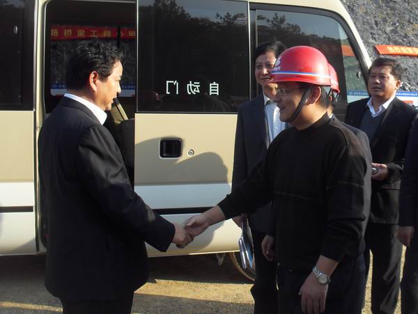 黃省長首先在施工現(xiàn)場聽取了績黃高速項(xiàng)目辦主任方昱對于工程建設(shè)情況的匯報(bào)。聽完匯報(bào)后,黃省長對公司和項(xiàng)目部的工作給予充分肯定和高度評價(jià)。他說,“省路橋公司是本省施工的龍頭企業(yè),代表本省的形象,希望你們再接再厲,繼續(xù)做好規(guī)范化施工,高效管理,抓住當(dāng)前機(jī)遇,努力打造優(yōu)質(zhì)工程,不斷提升企業(yè)形象,開辟新的市場,繼續(xù)做大做強(qiáng)?!蓖艨偙響B(tài),“省路橋公司在黃省長的關(guān)懷下,近年來企業(yè)改制改革方面取得了一定成效,企業(yè)取得了巨大發(fā)展,我們將繼續(xù)做好施工規(guī)范化、精細(xì)化管理,在省領(lǐng)導(dǎo)的關(guān)心與支持下,我們一定會抓住機(jī)遇、迎接挑戰(zhàn),把企業(yè)做大做強(qiáng)”。