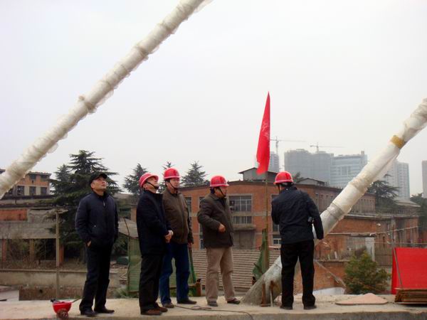 戴總一行參觀了大橋南岸主橋施工現(xiàn)場。在聽取了項目部江仲明經(jīng)理對前期工作和當(dāng)前施工進(jìn)展情況的匯報后,戴總對我部工作給予了高度評價,同時提出了更高的要求,希望我部繼續(xù)努力,再上新臺階。隨后,戴總一行還登上了主橋橋面,實地察看了正在緊張進(jìn)行的主橋前支點掛藍(lán)施工,親切慰問了冒著嚴(yán)寒戰(zhàn)斗在一線的現(xiàn)場施工工人和技術(shù)人員,并就主橋完成后如何拆除前支點掛藍(lán)提出了指導(dǎo)性的方案。