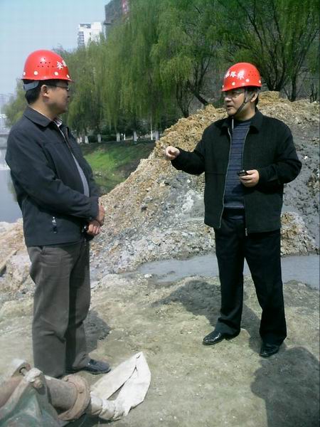 328上午,公司總經(jīng)理汪衛(wèi)東來到宋斗灣路工程施工現(xiàn)場檢查指導(dǎo)工作,項目經(jīng)理李建成,項目副經(jīng)理兼總工王明禮陪同檢查。