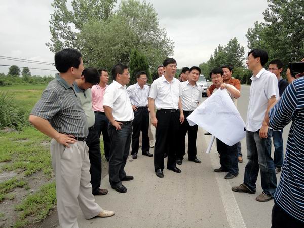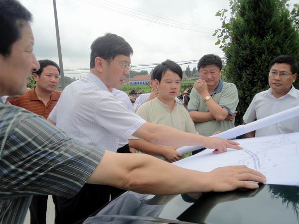 2010年7月15號(hào)上午,省交通廳副廳長羅寧、基建處長章厚忠、安徽省公路勘察設(shè)計(jì)院副院長王耀明、省高速公路控股集團(tuán)有限公司錢東升處長及副處長兼宣寧高速項(xiàng)目辦方昱主任、宣城市交通局局長牛傳勇和副局長梁世華,以及區(qū)高速公路指揮部、孫埠鎮(zhèn)相關(guān)負(fù)責(zé)人員,在我省路橋公司副總經(jīng)理盛明宏、宣寧02標(biāo)項(xiàng)目經(jīng)理張慶書的陪同下,蒞臨宣寧高速公路02標(biāo)項(xiàng)目現(xiàn)場,對(duì)K9+314支線上跨橋方案變更事宜進(jìn)行了現(xiàn)場會(huì)議討論。