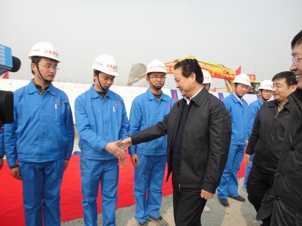 3日下午,黃省長(zhǎng)蒞臨寧績(jī)高速07標(biāo)視察。在該項(xiàng)目現(xiàn)場(chǎng),黃省長(zhǎng)與汪總進(jìn)行了親切地交談。黃省長(zhǎng)高度評(píng)價(jià)了公司近年來(lái)的發(fā)展歷程,高興地說(shuō),“以前安徽路橋還很困難,發(fā)不出工資;今天看到了安徽路橋足跡遍布十二省市,規(guī)模大,效益好,我由衷地感到欣慰?!迸R上車(chē)前,黃省長(zhǎng)緊握汪總的手語(yǔ)重心長(zhǎng)地鼓勵(lì)安徽路橋做大做強(qiáng),為推動(dòng)安徽公路事業(yè)發(fā)展承擔(dān)更多的責(zé)任。