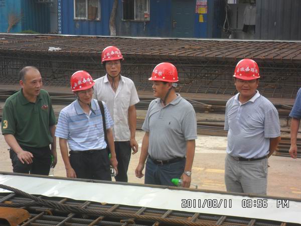 811下午,安徽建工集團(tuán)副總經(jīng)理、總工程師戴良軍、總工辦主任陳剛在公司副總經(jīng)理、總工程師彭申凱、副總工程師、總師辦主任陳莘的陪同下,蒞臨市政暢通一環(huán)K標(biāo)檢查指導(dǎo)工作。