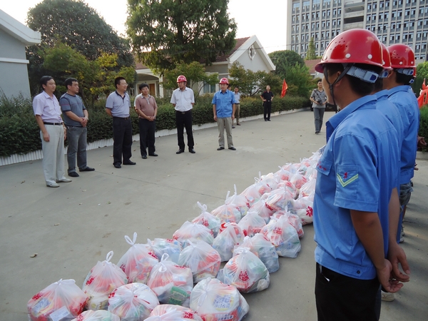 下午5時,寧世明副區(qū)長一行來到懷寧北路1標(biāo)施工現(xiàn)場,向冒著酷暑辛勤工作的廣大一線員工表示親切慰問。寧副區(qū)長關(guān)切的詢問員工們的生活情況及高溫天氣下的作業(yè)時間安排,并親手送上綠豆、白糖、純凈水、毛巾、風(fēng)油精等防暑降溫物品。寧副區(qū)長要求有關(guān)部門全力做好高溫季節(jié)各項工作,并叮囑工程負責(zé)人,無論工期多緊,也要做好安全生產(chǎn)工作,夏天氣溫高,要合理安排施工時間,在保證工程質(zhì)量、進度的同時,確保工人們勞逸結(jié)合,身體健康。