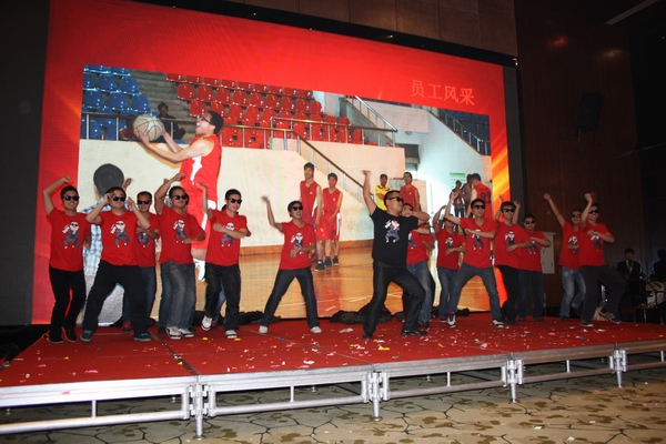 音域?qū)拸V,音色純正的男生獨(dú)唱《一生中最愛》,感情豐沛,對(duì)公司特有的情懷溢于言表;來自江西撫吉高速項(xiàng)目的歌曲串燒極具舞臺(tái)表現(xiàn)力,唱出了對(duì)公司的每位兄弟姐妹的美好祝愿;十年風(fēng)雨共濟(jì),十年不離不棄,宣寧項(xiàng)目自編自演的光影節(jié)目《十年》,黑白的影像,鏗鏘的獨(dú)白,展現(xiàn)了公司十年光輝歷程及對(duì)未來美好前景的祝愿,展現(xiàn)了鑄就恢弘藍(lán)圖的飽滿信心,引起了現(xiàn)場全體觀眾的內(nèi)心共鳴;后勤隊(duì)合唱《眾人劃槳?jiǎng)澊蟠?,讓我們感覺到了團(tuán)結(jié)就是力量,離夢想的步伐將會(huì)越來越近;宣貍五標(biāo)青年團(tuán)隊(duì)引領(lǐng)潮流,團(tuán)隊(duì)風(fēng)采展示融合時(shí)下流行的《江南style》舞蹈,引爆全場,將聯(lián)誼會(huì)氣氛推向高潮;一首《牽手》,真情流露,溫柔而富有感性;租賃公司情景劇《瘋狂走四方》更是搞笑吐糟,引起陣陣掌聲,再一次讓現(xiàn)場氣氛推向高潮。